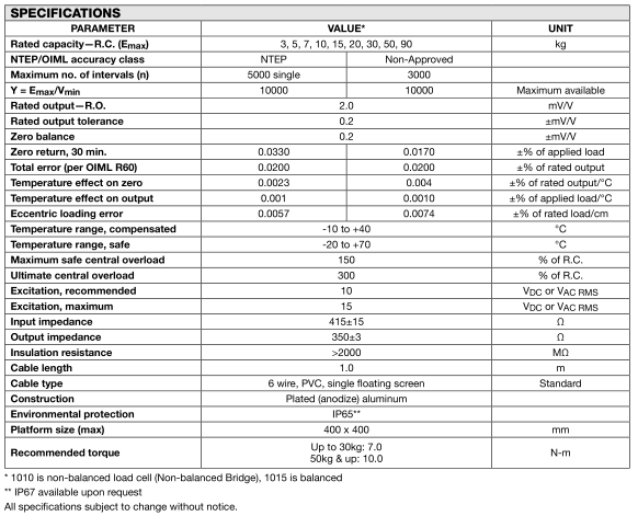 模型1010-5KG的內(nèi)置過(guò)載停止提供機(jī)械過(guò)載保護(hù)。模型1010-5KG是一個(gè)單點(diǎn)負(fù)荷細(xì)胞,專為直接低成本的安裝,低容量的稱重平臺(tái)。在大型平臺(tái)使用,結(jié)合高精度成本低,使得這一負(fù)荷細(xì)胞,非常適合大稱重的應(yīng)用范圍,包括臺(tái)秤兩個(gè)額外的感測(cè)線的反饋電壓到達(dá)負(fù)載細(xì)胞。完全補(bǔ)償由于溫度變化引起的電阻變化和/或延長(zhǎng)線是由喂養(yǎng)這個(gè)電壓實(shí)現(xiàn)在適當(dāng)?shù)碾娮。(英譯:Model 1010-5KG built-in overload stop providing mechanical overload protection. Model 1010-5KG is a single point load cell, is designed for direct installation, low cost, low capacity of weighing platform. Used in the large platform, combined with the high precision of low cost, make the load cells, very suitable for large weighing, the application scope of including platform scale two additional feedback sensing line voltage to load cells. Full compensation due to the resistance change with the temperature change and/or extension cord is implemented by feeding the voltage in the proper electronic.)