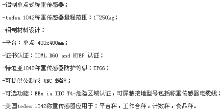 美國威世特迪亞vishay tedea 1042-200kg稱重傳感器特性: