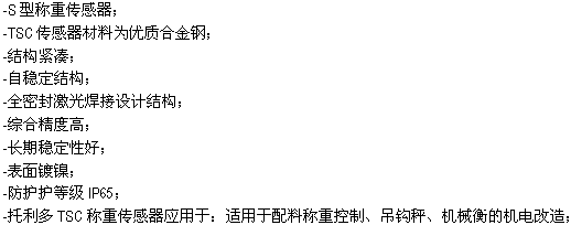 TSC-50kg稱重傳感器材料為優(yōu)質(zhì)合金鋼,長(zhǎng)期穩(wěn)定性好,應(yīng)用于配料稱重控制、吊鉤秤、機(jī)械衡的機(jī)電改造等。(TSC-50kg weighing sensor material is high quality alloy steel, good long-term stability and application in the weighing control, hook scales, mechanical and electrical transformation of mechanical equilibrium, etc.)