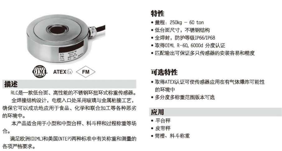 RLC是一款低臺面、高性能的不銹鋼環(huán)扭環(huán)式稱重傳感器。