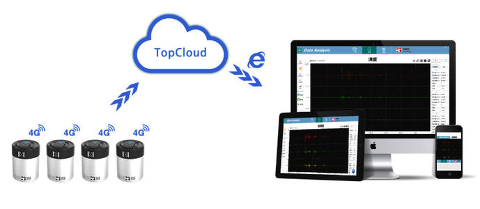 捷杰傳感智能無線傳感器在線檢測系統(tǒng),通過無線振動監(jiān)測傳感器和無限網(wǎng)關(guān)實現(xiàn)數(shù)據(jù)4G上云或到中央服務(wù)器。通過