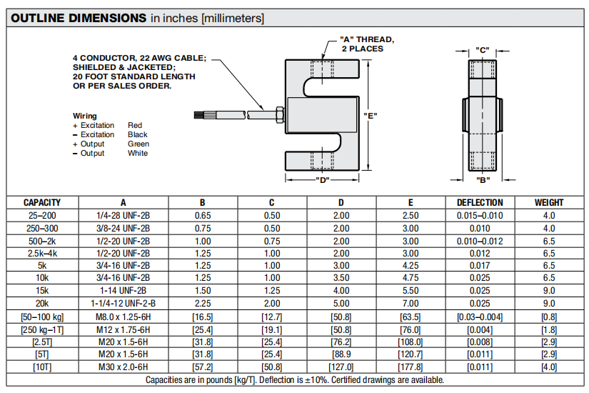 •額定容量為25至20000磅 50公斤至10公噸