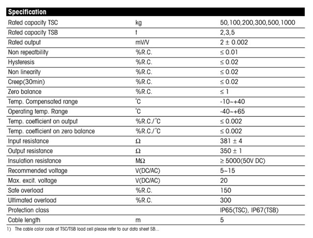 注:TSB-2000是梅特勒-托利多傳感器中容量為2000KG。所以量程為2000KG,那么型號(hào)就是TSB-2000。以止類推得到TSB系列的所有型號(hào)。