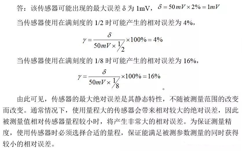 和1/8時(shí)計(jì)算可能產(chǎn)生的相對(duì)誤差。并由此說(shuō)明使用傳感器選擇適當(dāng)量程的重要性。