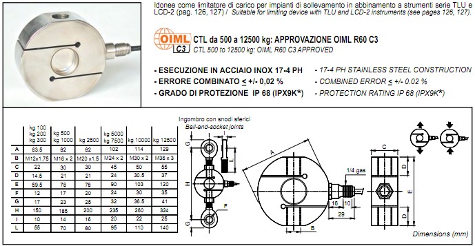 意大利Lauma CTL-100kg傳感器參數(shù):