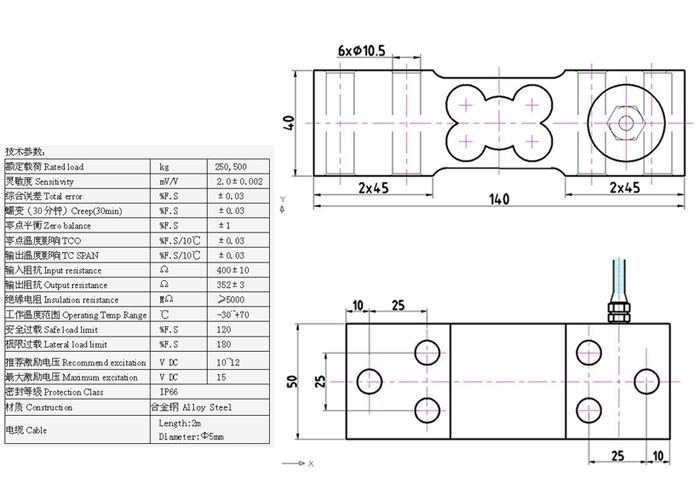 美國SUNCELLS ILKJB250-500kg稱重傳感器參數(shù)尺寸: