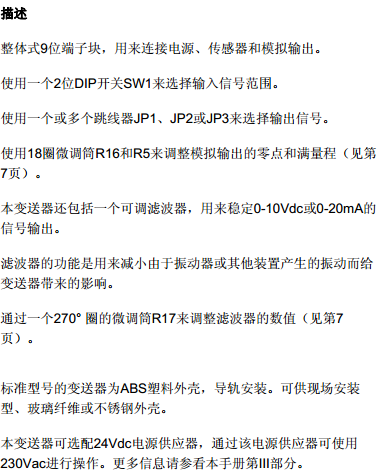 輸出方式:0-10Vdc,0-20mA或4-20mA