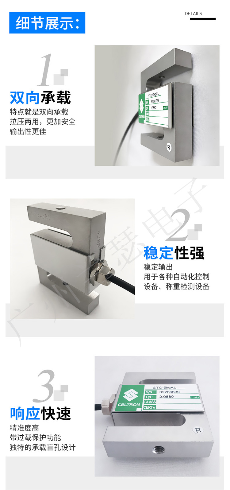 美國Celtron STC-75kg稱重傳感器特點(diǎn)與應(yīng)用: