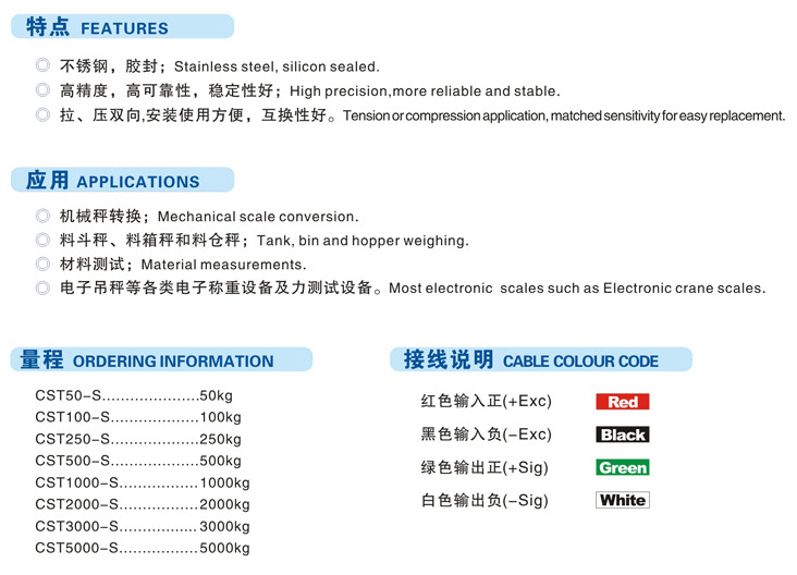 CST-S傳感器,志美CHIMEI CST-S稱重傳感器規(guī)格: