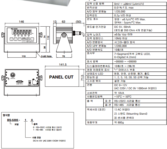 韓國Bongshin BS-5205稱重儀表技術(shù)指標(biāo)