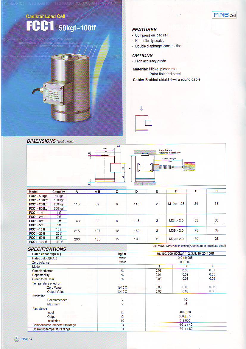 韓國Fine稱重傳感器FCC1所有型號: