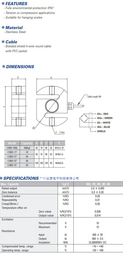 韓國(guó)CURIOSITY CSBS拉壓力稱重傳感器采用合金鋼,不銹鋼材質(zhì)膠密封防護(hù)處理,安裝容易,使用方便,適用于吊秤,配料秤,機(jī)改秤等電子測(cè)力稱重系統(tǒng).額定載荷50kgf,100kgf,150kgf,200kgf,300kgf,500kgf,1tf,2tf,3tf,5tf,10tf。