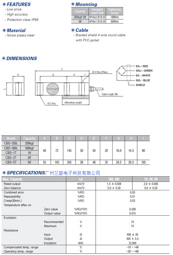 韓國CURIOSITY CCT CBS稱重傳感器產(chǎn)品參數(shù)尺寸