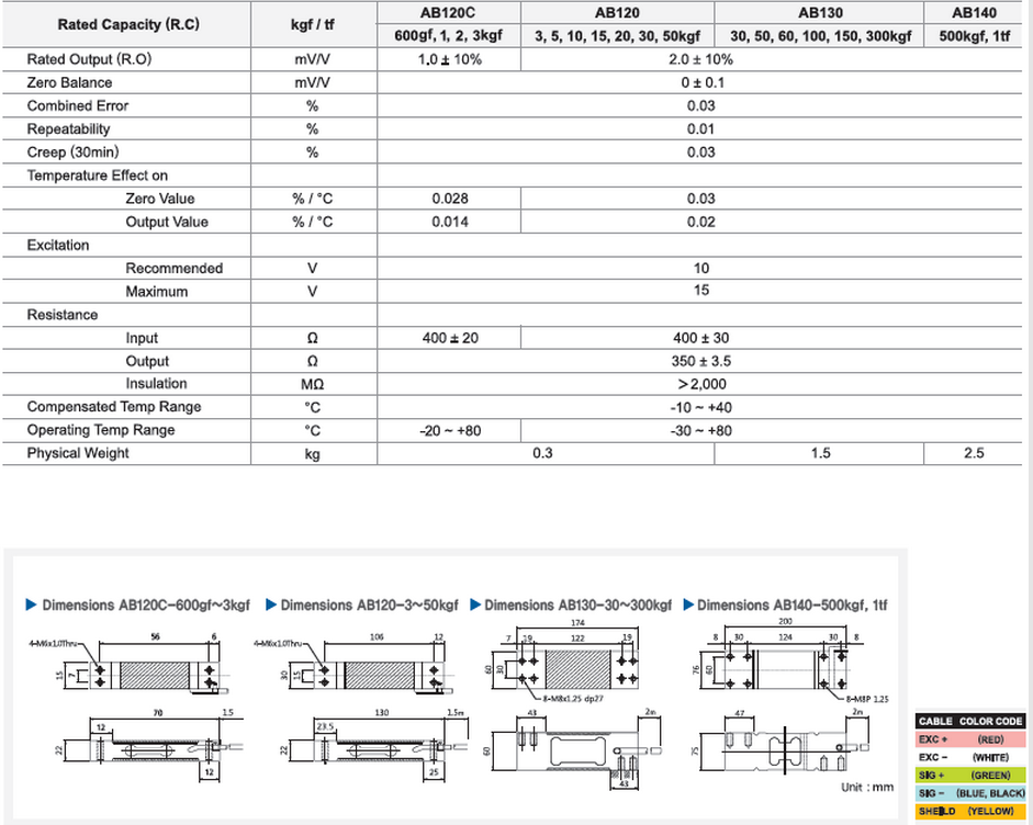 韓國(guó)SEWHACNM(世和)AB120稱重傳感器規(guī)格和圖紙