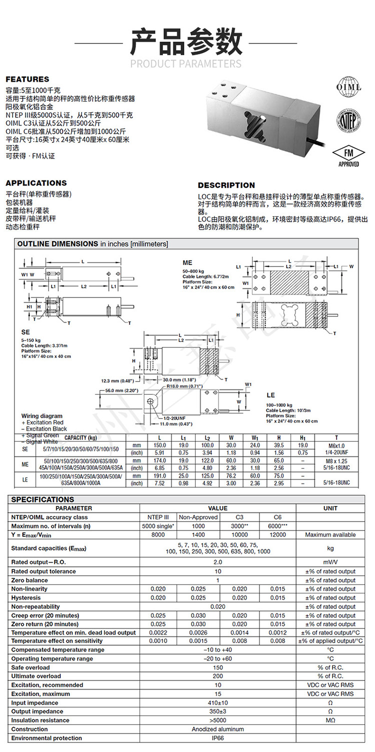 美國Celtron LOC-30kg稱重傳感器產(chǎn)品參數(shù):