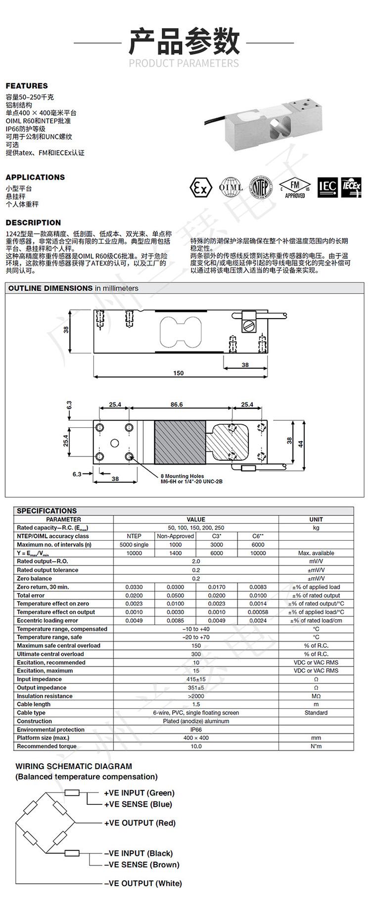 美國Tedea 1242-50kg稱重傳感器產(chǎn)品參數(shù):