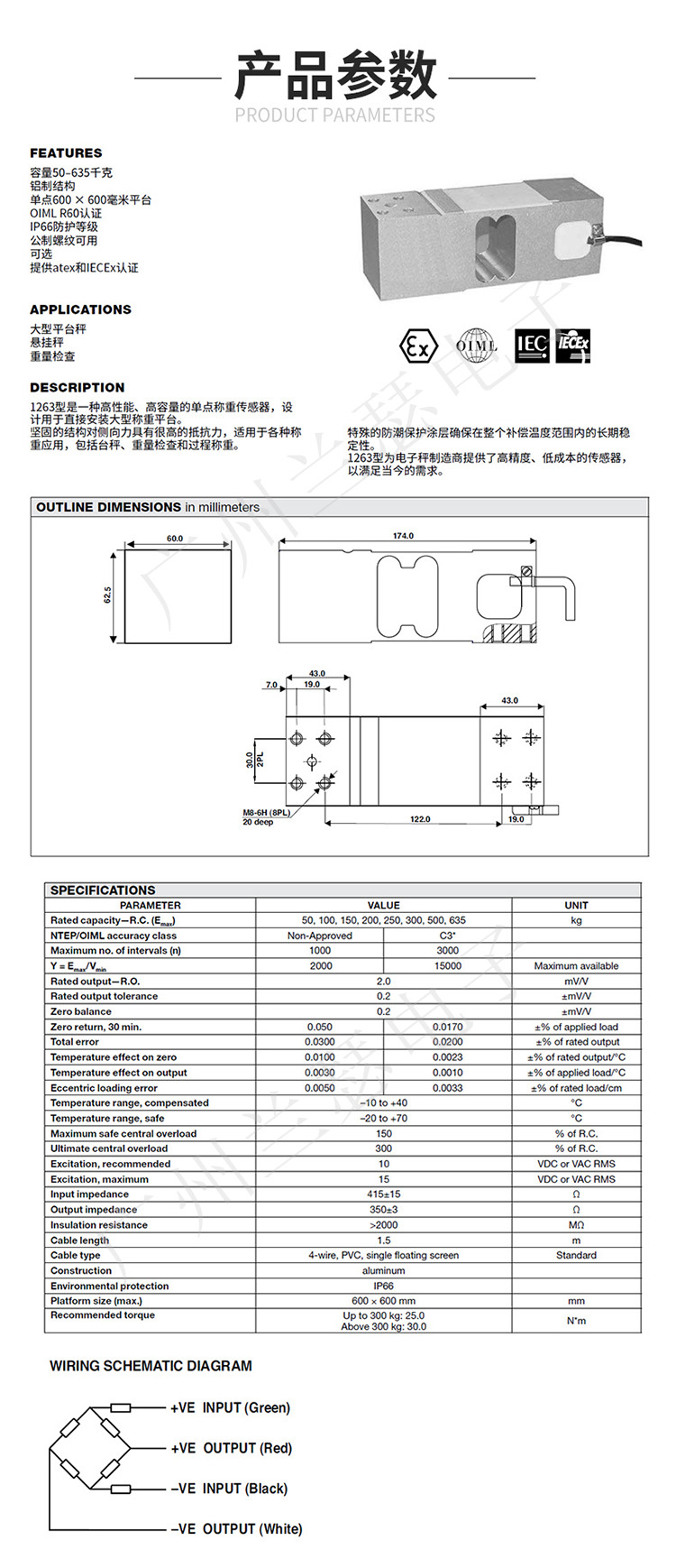 美國Tedea 1263-250kg稱重傳感器產(chǎn)品參數(shù):