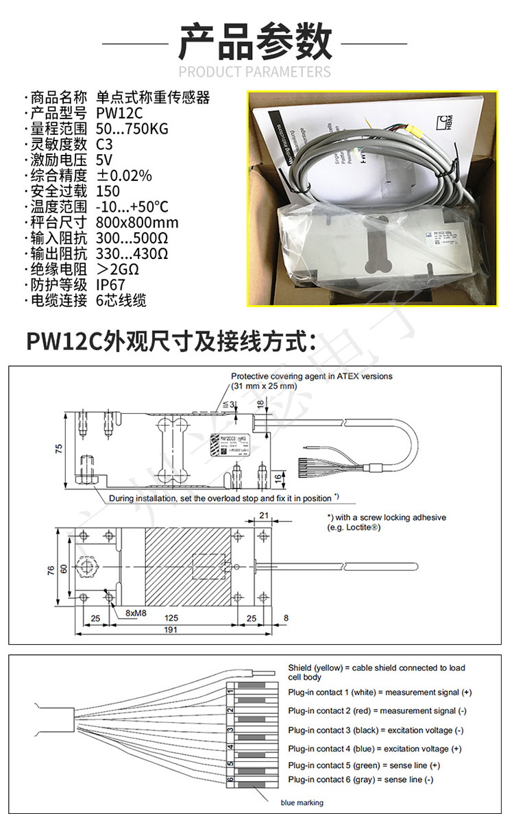 PW12CC3/100KG傳感器6 線制