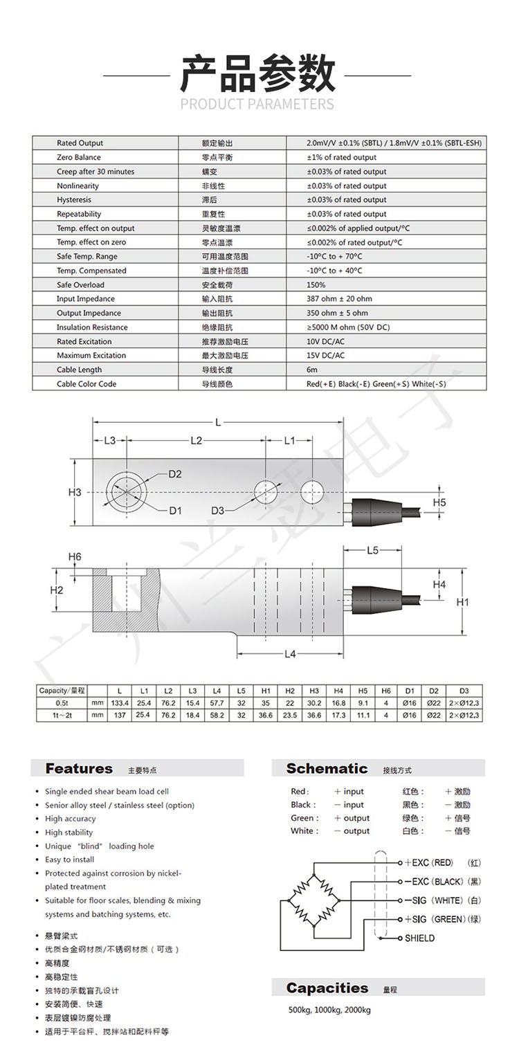 產品類型:懸臂梁式稱重傳感器