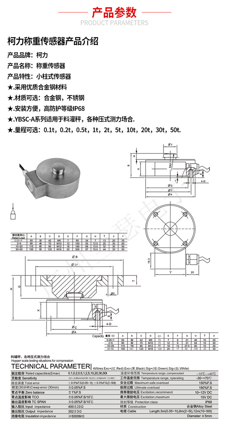 寧波柯力 YBSC-A-1t稱重傳感器產(chǎn)品參數(shù):