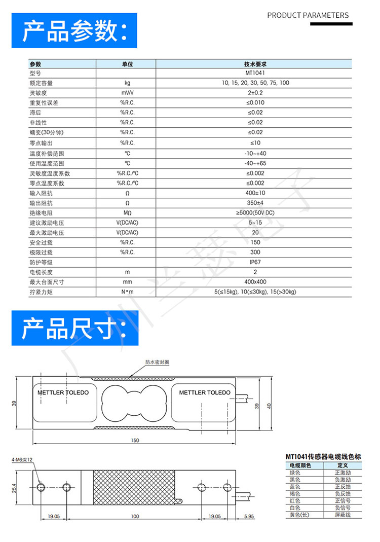 注:MT1041-10是梅特勒-托利多傳感器中容量為10kg,那么型號(hào)就是MT1041-10。以止類推得到MT1041系列的所有型號(hào)。