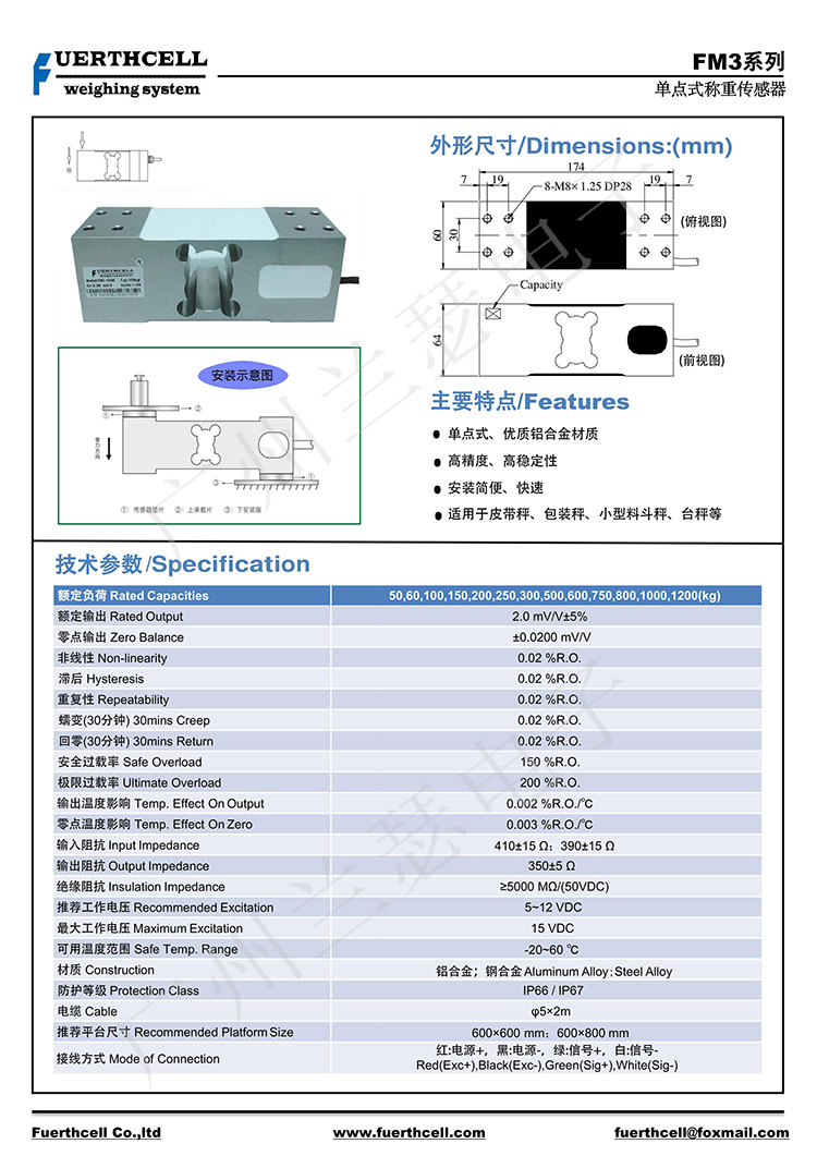 美國FUERTHCELL FM3-200KG稱重傳感器產(chǎn)品參數(shù):