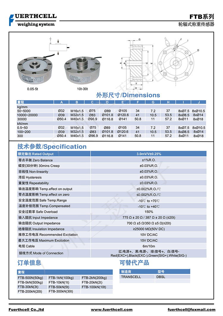 美國(guó)FUERTHCELL FTB-2T稱重傳感器產(chǎn)品參數(shù):