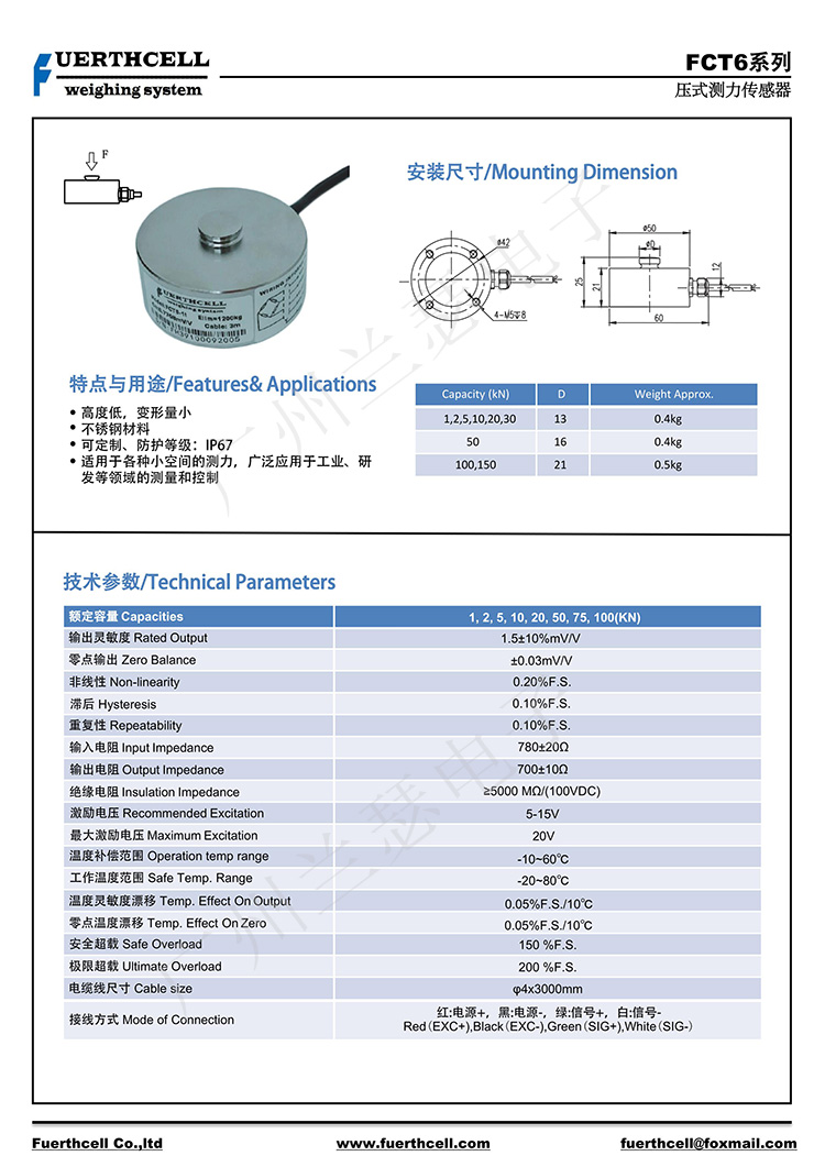 美國(guó)FUERTHCELL FCT6-200KG稱重傳感器產(chǎn)品參數(shù):