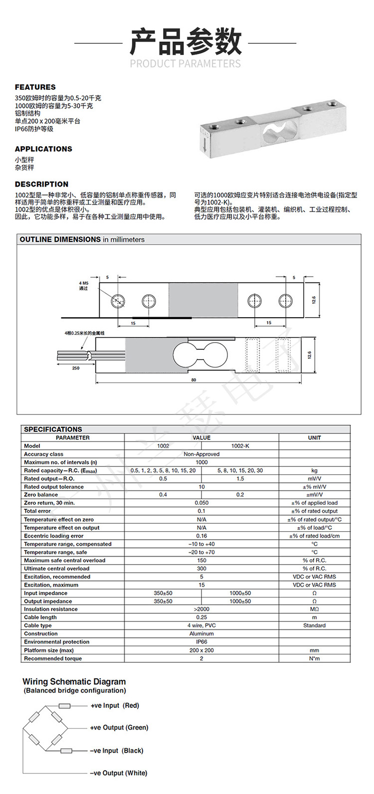 美國(guó)Tedea 1002稱重傳感器產(chǎn)品參數(shù):