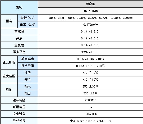 Dacell UMM傳感器技術(shù)參數(shù):