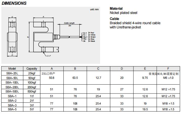 韓國CAS SB-50L傳感器技術(shù)參數(shù):