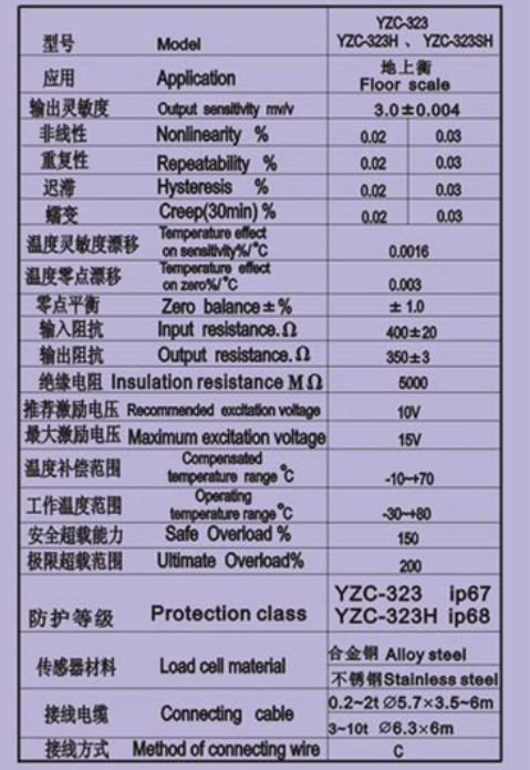 廣測GUANGCE YZC-323稱重傳感器技術(shù)參數(shù)
