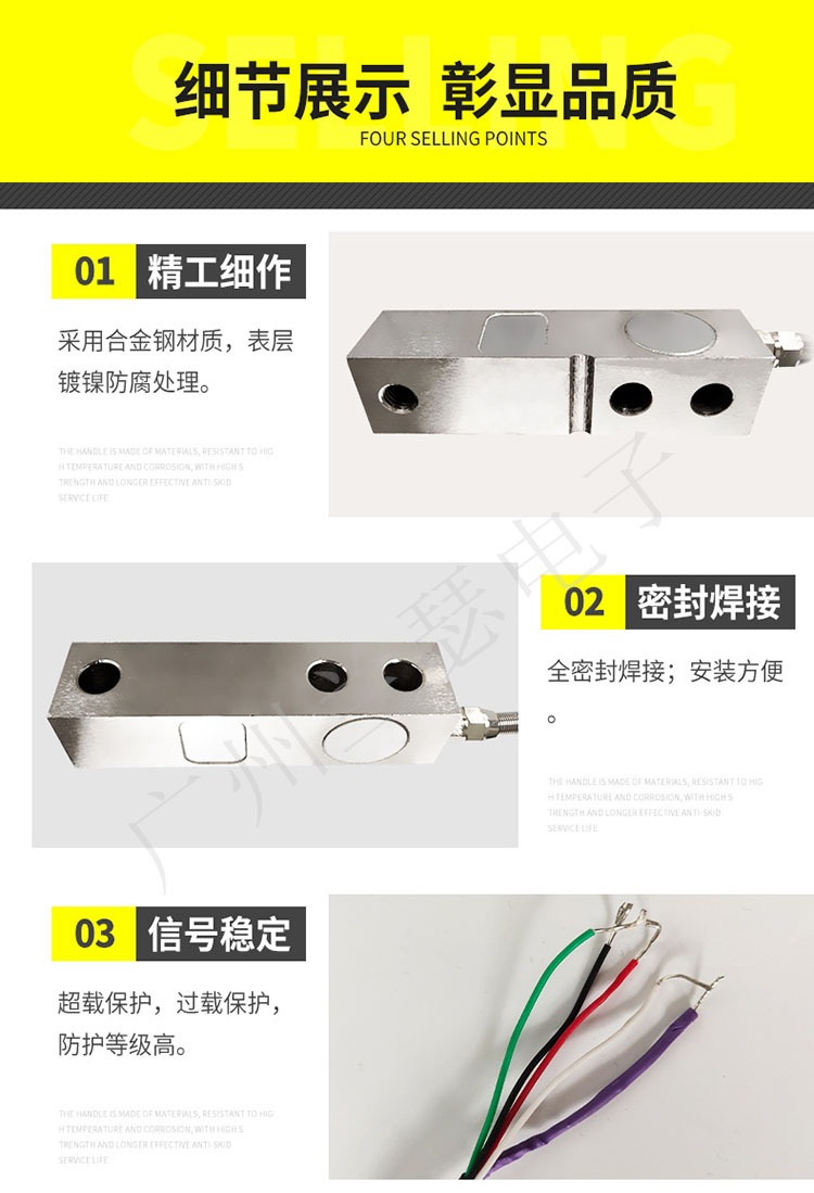 安裝簡便、快速;表層鍍鎳防腐處理;懸臂梁式;優(yōu)質合金鋼材質;高精度;高穩(wěn)定性;獨特的承載盲孔設計;適用于平臺秤、汽車衡、配料秤、低平臺秤等。