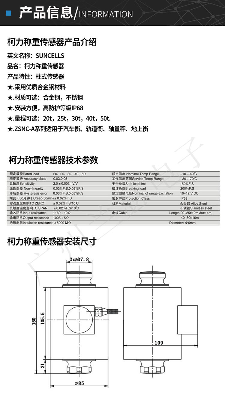 柯力ZSNC-A稱重傳感器特點應用:注:ZSNC柱式傳感器,可選ZSNC-SS不銹鋼稱重傳感器、ZSNC-D數字稱重傳感器