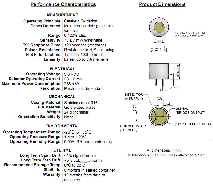 輸出靈敏度:30±6mv/%CH4