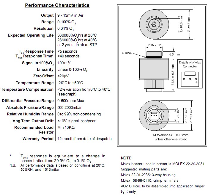 英國(guó)CITY AO2氧氣傳感器概述
